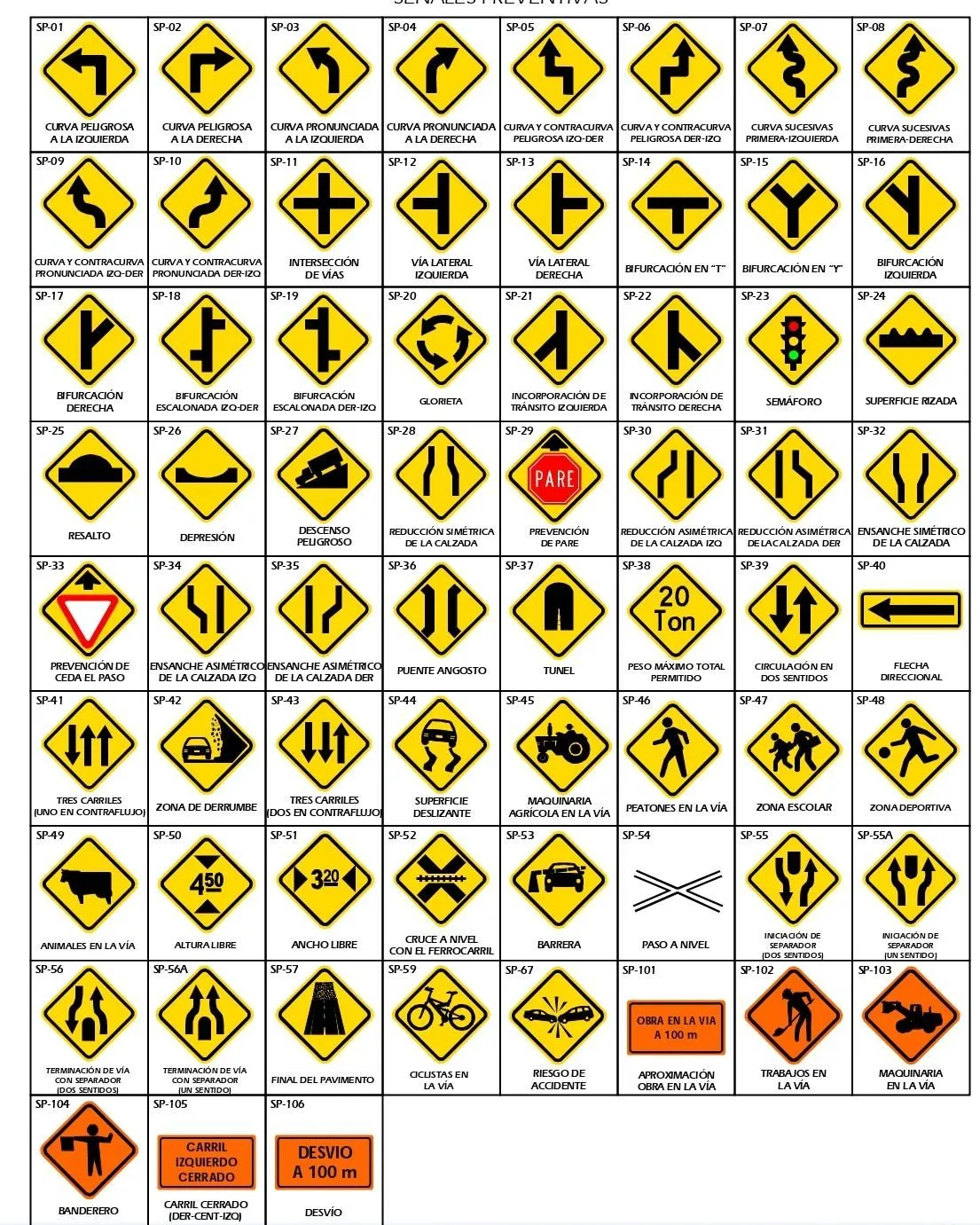 HL Servicios ofrece una colección completa de señales preventivas, diseñadas para alertar a los usuarios de las vías sobre la presencia y naturaleza de posibles peligros o situaciones imprevistas en la carretera y sus áreas adyacentes, sean estas permanentes o temporales. Identificadas con el código SP, estas señales son fundamentales para prevenir accidentes y mejorar la seguridad vial.
